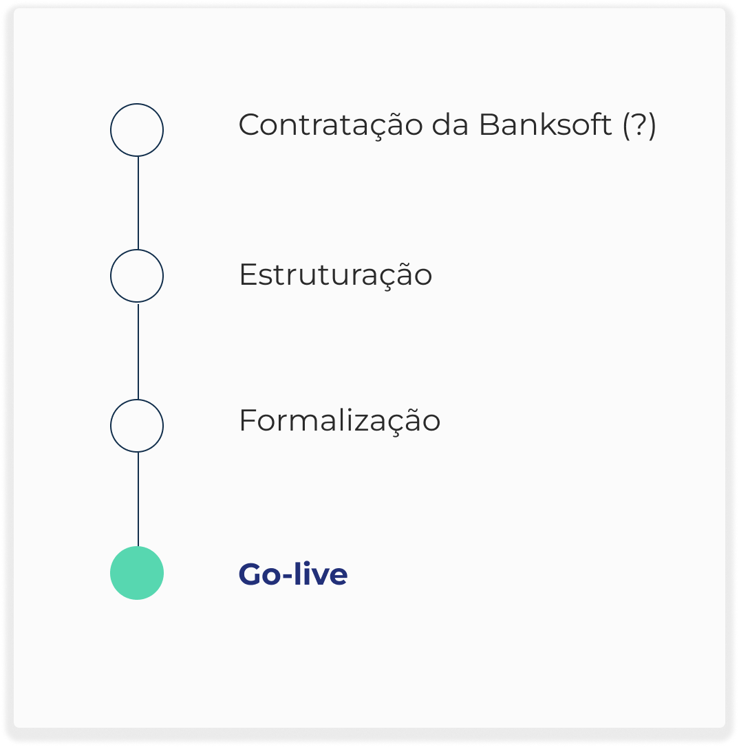 Da formalização à operação, o processo é guiado e estruturado: definição de convênios, adequações técnicas, emissão da CCB e testes finais. Resultado: sua operação pronta para rodar com governança, funding próprio e suporte especializado.